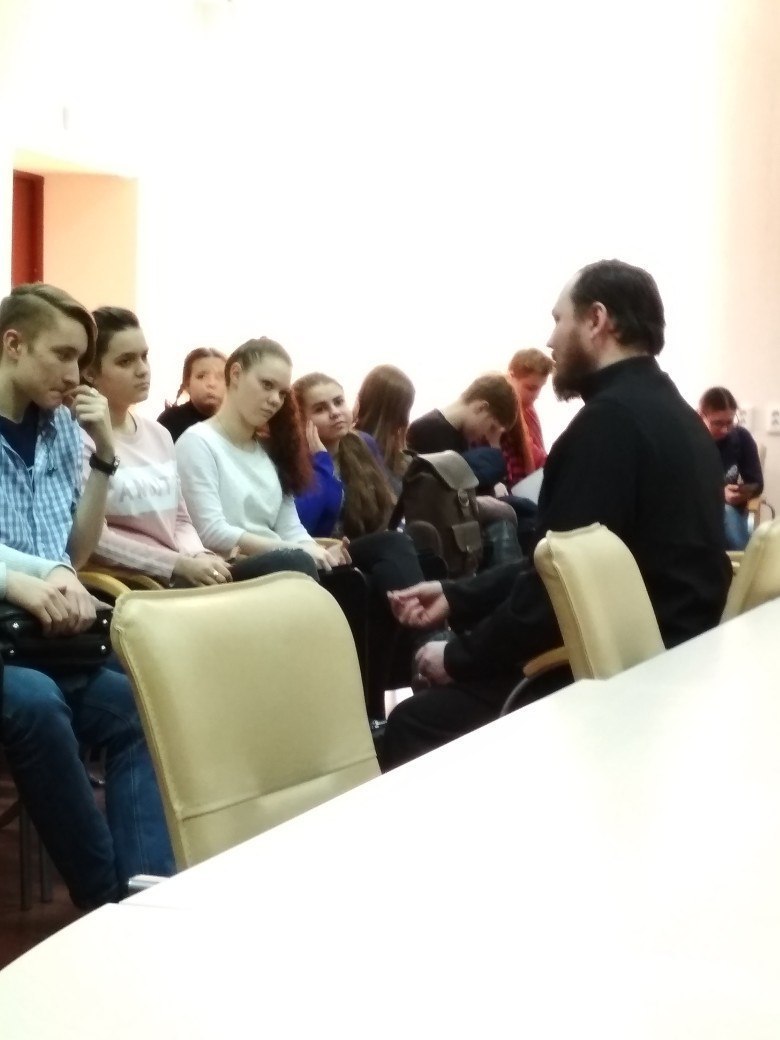6 февраля 2018 года прошла встреча со студентами МГУ им. Н.П. Огарева факультета национальной культуры на тему « Жизнь-дар Божий». Беседовал со студентами председатель Миссионерского отдела, благочинный Северо-Западного округа, протоиерей Николай Бябин. Встреча прошла в форме диалога, прозвучало много вопросов о смысле жизни, о добре и зле, о любви, о ценности жизни.
